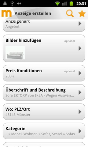 9. Kleinanzeigen Eigene Kleinanzeigen aufgeben oder in den Kleinanzeigen anderer Nutzer stöbern macht mit der Kleinanzeigen App von markt.de auch mobil Spaß. Die Annoncen sind in verschiedene Rubriken eingeteilt. Das Einstellen einer eigenen Kleinanzeige dauert nur wenige Minuten. Die App selbst kann kostenlos auf das eigene Android Gerät geladen werden.