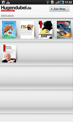 10. Hugendubel eBook Lese-App Im Online-Shop der Buchhandelskette Hugendubel stehen weit mehr als 100.000 Buchtitel als Ebook zum Download bereit. Den dazugehörigen Ebook Reader liefert die Hugendubel eBook Lese-App. Der Nutzer kann damit Lesezeichen zum späteren Weiterlesen setzen, zwischen Tages- und Nachtmodus wechseln, im Schnelldurchgang vor- und zurückblättern und einiges mehr. Die Hugendubel eBook Lese-App kann kostenlos aus dem Google Play Store heruntergeladen werden.