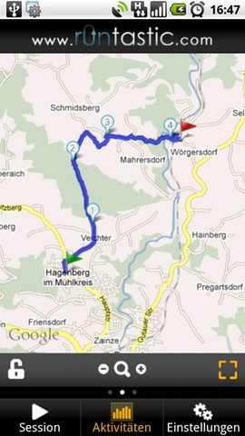 | 3. Endomondo Sports Tracker Der Endomondo Sports Tracker last sich für verschiedene Sportarten verwenden. Dazu gehören u. a. Laufen, Joggen und Radfahren. Wie auch der RunKeeper Pro zeichnet Endomondo Zeiten, Distanzen, Geschwindigkeiten, Herzfrequenz und verbrauchte Kalorien auf und zeigt absolvierte Routen auf einer Karte an. Mit der kostenpflichtigen Pro Version hat der Nutzer zusätzlich die Möglichkeit, seine Verbesserungen im Blick zu behalten und beispielsweise die für eine Strecke benötigte Zeit mit früheren Versuchen zu vergleichen. |