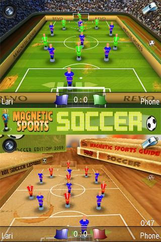 6. Magnetic Sports Soccer Lite Das Flair der alten Tischfußballspiel-Spiele bringt Magnetic Football Lite auf Android. Hier laufen die Spieler nicht über das Spielfeld, sondern stehen an ihrem angestammten Platz und warten darauf, dass der Ball bei ihnen vorbei kommt. Sobald dies der Fall ist, lassen sich Richtung und Schussstärke einstellen und hoffentlich so mancher Torerfolg erzielt. Auch der Torwart wird vom Spieler selbst gesteuert.