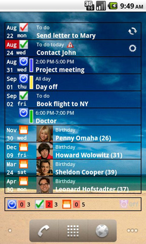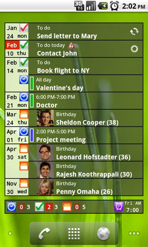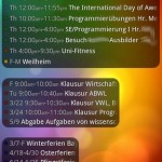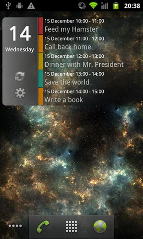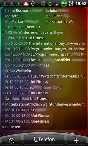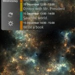 18. What and When Widget Das What and When Widget eignet sich nicht nur zum Anzeigen der nächsten Termine des Kalenders, sondern es können auch Aufgaben, Geburtstage, Jahrestage etc. angezeigt werden. Optional lassen sich neben den Einträgen auch Foto-Thumbnails entsprechener Personen mit angezeigt werden. Vier verschiedene Widget-Größen werden angeboten (4×1, 4×2, 4×3 und 4×4). What and When Widget gibt es in einer kostenpflichtigen Pro-, sowie in einer kostenfreien Lite-Version.