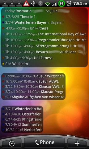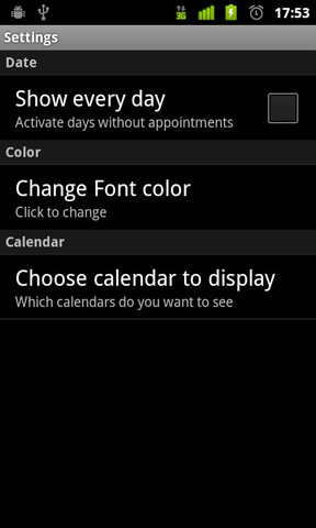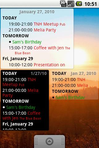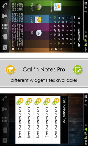 10. CalWidget CalWidget bringt alle denkbaren Widget-Größen mit (2×1, 2×3, 2×4, 3×1, 3×2, 3×3, 3×4, 2×2, 4×1, 4×2, 4×3 und 4×4). Je nach gewählter Widget-Größe werden so viele Termine angezeigt, wie auf das Widget passen. Im Einstellungsmenü können die Farbe des Hintergrundes und der Schrift an eigene Wünsche angepasst werden.