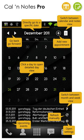 6. Antons Kalender-Widget Auch Antons Kalender-Widget steht kostenlos im Android Market zum Download bereit. Durch die platzsparende Gestaltung sollen so viele Termine angezeigt werden wie möglich. Der Nutzer hat die Wahl zwischen vielen verschiedenen Widget-Größen. Mit der enthaltenen Größe von 4×4 kann auf Wunsch auch ein kompletter Homescreen mit der Terminanzeige belegt werden.