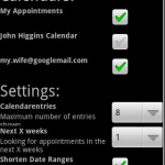 8. Android Agenda Widget Mit dem Android Agenda Widget lassen sich Termine und Aufgaben anzeigen, die beispielsweise im Google Kalender, Motorola Milestone Kalender oder einer der Notepad-Apps Astrid, SSI gTasks und Dato GTask gespeichert sind. Die verfügbaren Widget-Größen sind 2×2, 2×3, 2×4, 3×1, 3×2, 3×3, 3×4, 4×1, 4×2, 4×3 und 4×4. Das optische Erscheinungsbild des Android Agenda Widgets lässt sich mit Skins und Einstellungsmöglichkeiten an persönliche Wünsche anpassen.