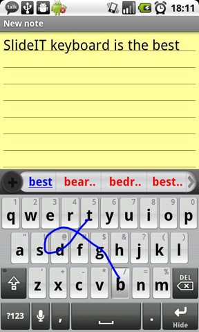 2. SlideIT Keyboard Beim SlideIT Keyboard wird das Antippen der einzelnen Buchstaben dadurch ersetzt, dass der Nutzer mit aufgelegtem Finger von Buchstabe zu Buchstabe fährt. Mit ein wenig Übung lassen sich so Texte in deutlich kürzerer Zeit erstellen. Die App unterbreitet Wortvorschläge in zwei Sprachen gleichzeitig. Insgesamt unterstützt SlideIT Keyboard 40 Sprachen. Wahlweise können die Eingaben auch per Sprache vorgenommen werden. Die unten stehenden Links führen zur Testversion von SlideIT Keyboard. Die Version kann 15 Tage kostenlos getestet werden.