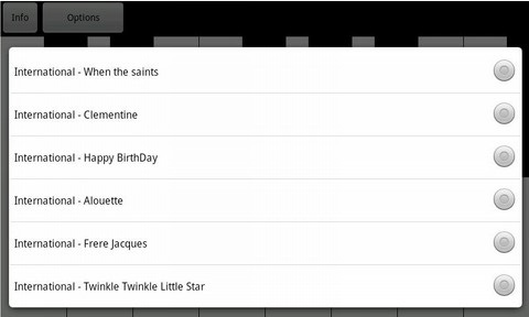 4. Little Piano An ein jüngeres Publikum richtet sich die kostenlose App Little Piano, die über acht weiße und sechs schwarze Tasten verfügt. Die Tasten können wahlweise auch mit Trompeten-, Gitarren-, Glocken- oder Percussion-Tönen belegt werden. Darüber hinaus stehen verschiedene Lieder zum Nachspielen bereit, darunter We wish you a Merry Christmas, Old MacDonald und For he’s a jolly good fellow.