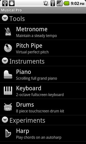 3. My Piano Das Klavier von My Piano besteht aus zehn weißen und sieben schwarzen Tasten, die auch gleichzeitig erklingen können (Multitouch). Außerdem verfügt die App über einen integrierten Sampler. Die Klavieroptik kann mithilfe verschiedener Skins an eigene Vorlieben angepasst werden. Neben verschiedenartigen Klaviertönen lassen sich die Tasten u. a. auch mit einer Akustik-Gitarre, einem Synthesizer oder einem Saxophon belegen. My Piano kann kostenlos aus dem Android Market heruntergeladen werden.