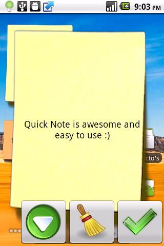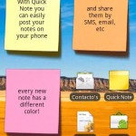 8. Quick Note (post-it widget) Bei Quick Note (post-it widget) kann der Nutzer zwischen vier verschiedenen Widget-Größen wählen. Für eine bessere Übersichtlichkeit sorgen verschiedene Farbvarianten, die ebenfalls selbst einstellbar sind. Die Memos lassen sich per Email, SMS oder andere Apps (z. B. Dropbox) versenden. Auch Quick Note (post-it widget) kann kostenlos aus dem Android Market heruntergeladen werden.