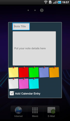 7. Sticky Note Beim ebenfalls kostenlosen Sticky Note liegt der Fokus hingegen auf der einfachen Platzierung von Erinnerungs-Memos. Einfach das Widget platzieren, Text eingeben, eine der acht Widget-Farben bestimmen und fertig! Auf Wunsch können die Einträge gleich im Kalender gespeichert werden.