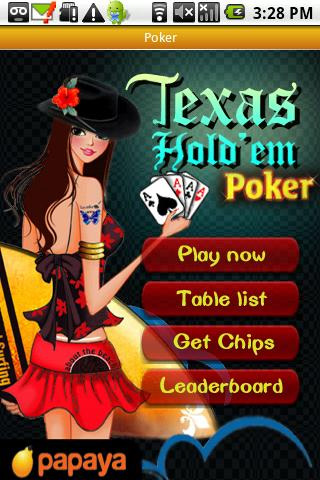7. Papaya Live Poker Mit Papaya Live Poker steht eine weitere kostenlose Texas Holdem Poker App im Android Market bereit, mit der sich Online-Duelle gegen Spieler aus der ganzen Welt austragen lassen. Während des Spiels können die Spieler mit miteinander per Chat in Kontakt treten oder ihre Leistungen in der Weltrangliste nachvollziehen. Auch VIP Tische werden bei Papaya Live Poker angeboten.