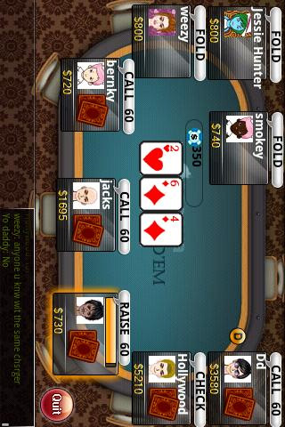 1. Live Holdem Poker Pro Am meisten überzeugt hat uns die Poker-App Live Hold’em von Dragonfly. Der Spieler tritt entweder gegen seine Freunde (durch Facebook Connect) oder gegen andere Android Besitzer aus der ganzen Welt an. Die App gehört zu den ausgereiftesten Android Poker-Spielen, hat die mit Abstand schönste Pokertisch-Grafik und immer gut besuchte Tische. Das macht Live Holdem Poker Pro zu unserem Favoriten. |