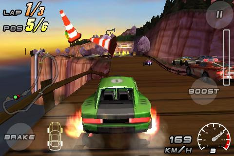 8. Pocket Racing Auch wenn heutige Spiele mit Hochglanz-3D-Optik glänzen, standen die Spiele der alten 2D-Ära aktuellen Titeln in puncto Spielspaß in nichts nach. Das gilt auch für Pocket Racing. Das Spiel beweist, wie Rennspiele mit 2D-Optik auch heute noch begeistern können. Dafür stehen fünf verschiedene Rennwagen zur Verfügung, mit denen auf acht Strecken gefahren werden kann. Die Rennautos verfügen alle über unterschiedliche Stärken und Schwächen beim Handling, der Endgeschwindigkeit oder der Beschleunigung. Auch Pocket Racing hat OpenFeint-Funktionen an Bord.
