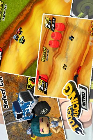 12. Touch Racing Nitro Bei Touch Racing Nitro muss sich der Spieler nicht allein auf seine Pferdestärken verlassen, denn die Rennwagen wurden mit Nitros etwas aufgemotzt. Damit kann man dem Fahrzeug für kurze Zeit einen wahnsinnigen Schub verleihen. Insgesamt bietet Touch Racing Nitro 12 verschiedene Autos, darunter Buggies, 4×4’s, Monster Trucks und Super-Autos. Damit geht es auf 18 Rennstrecken und drei Turnier-Modi feurig zur Sache.