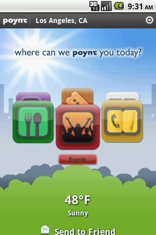 7. Poynt Bei Poynt kann der Nutzer auf verschiedene Arten das passende Restaurant finden. Es lassen sich entweder alle Restaurants der direkten Umgebung, Restaurants bestimmter Nationalitäten (Regionen) oder Küchen mit bestimmten Eigenschaften (z. B Frühstück, vegetarisch) anzeigen. Mit der Suchfunktion ist auch die Suche nach bestimmten Restaurants möglich. Für jeden Eintrag stehen die Adresse und Entfernung zum aktuellen Standort zur Verfügung, ansonsten wird der Nutzer direkt zur Website des Restaurants weitergeleitet. Per Fingertipp wird die Lage des Restaurants auf einer Karte (Google Maps) dargestellt. Poynt ist kostenlos im Android Market erhältlich.