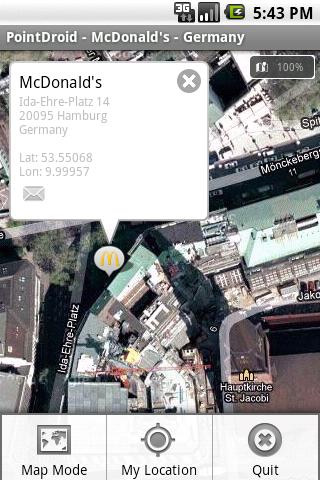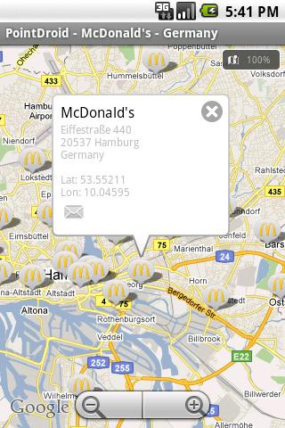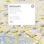 9. McDonalds – Germany – Free Wer speziell auf der Suche nach Restaurants mit dem gelben, großen M ist, kann entweder auf KlickTel vertrauen (siehe oben) oder er greift in bisheriger Abwesenheit einer offiziellen deutschsprachigen McDonald’s App auf das kostenlose McDonald’s – Germany – Free zurück. Hier findet er mehr als 1.200 Filialen im ganzen Bundesgebiet auf einer Karte. Die Adressen der Einträge können angezeigt oder per Email versandt werden.