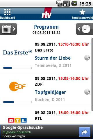3. rtv-Fernsehguide Die gedruckte Ausgabe der Fernsehzeitschrift rtv wird jeder Woche von mehr als 13 Millionen Menschen gelesen. Mit der rtv-Fernsehguide App steht das TV-Programm auch Nutzern von Android Smartphones und Tablets zur Verfügung. Die App kann ohne Anmeldung verwendet werden. Registrierte Mitglieder profitieren hingegen von zusätzlichen Funktionen wie personalisierbaren Sender-Übersichten oder TV-Tipps. Der Download der rtv-Fernsehguide App ist kostenlos.