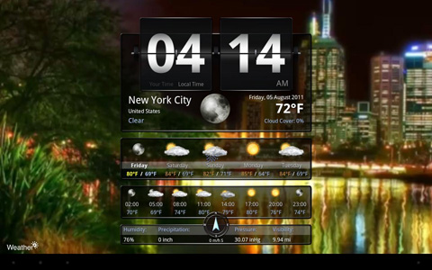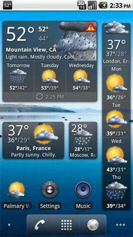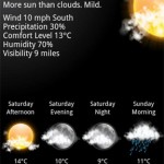 8. witiz weather witiz weather stellt die Wetterprognose für die jeweils kommenden sieben Tage übersichtlich und ohne unnötige Details dar. Die App beschränkt sich auf die Wetterlage sowie die Tiefst- und Höchsttemperatur. Neben einem reinen Wetter-Widget bringt witiz weather noch ein kombiniertes Uhren- & Wetter-Widget mit. Die App steht kostenlos zum Download im Android Market bereit.