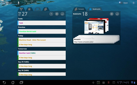 11. Tabr widget Das Tabr widget besteht aus speziell für den Einsatz auf Tablets mit Android 3.0 (Honeycomb) optimierten Widgets für Kontakte und Bookmarks. Außerdem lassen sich kostenlose Add-Ons aus dem Android Market herunterladen. Dazu gehören ein Agenda Widget (Kalender Widget) sowie ein Widget zum Anzeigen von News-Streams sozialer Netzwerke. Tabr widget steht kostenlos zum Download im Android Market bereit.