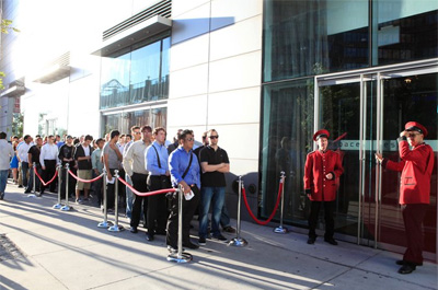 In New York City hat vor wenigen Stunden der Verkauf des ersten Samsung Tablets mit Android 3.0 (Honeycomb) begonnen. Wie man sehen kann bildete sich vor dem Eingang zur Premiere des Samsung Galaxy Tab 10.1 eine lange Schlange von Leuten, die das neue Tablet direkt in Augenschein nehmen wollten. Die Fotos hat Samsung auf seiner Facebook-Seite veröffentlicht. Dort sind auch noch weitere Fotos zu sehen. Vor einigen Tagen berichteten wir von Gerüchten, dass Samsung das Galaxy Tab 10.1 – wie auch das Samsung Galaxy Tab 8.9 – erst im August nach Europa bringen wird. Beim Anblick der Fotos hoffen wir inständig, dass es sich wirklich nur um ein Gerücht handelt.