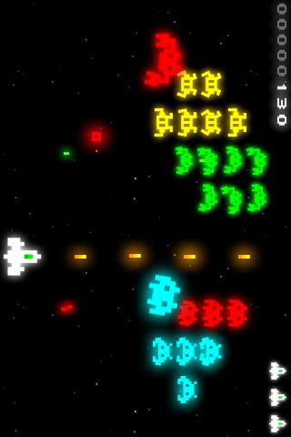 Mit der verbleibenden Menüoption wird das Spiel gestartet. Zunächst wählt der Spieler aus drei Schwierigkeitsgraden den passenden aus. Zur Verfügung stehen Casual, Survival und Hardcore. Anschließend wird er mit der leichten Steuerung vertraut gemacht: Eine Berührung auf der linken Bildschirmseite steuert das Raumschiff nach links, auf der anderen Seite geht es hingegen nach rechts. Seine Munition feuert das Raumschiff selbständig ab.