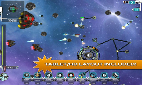 Die Waffensysteme unterscheiden sich u. a. durch Feuerkraft, Reichweite und Schussfrequenz. Natürlich lassen sie sich allesamt – das nötige Kapital vorausgesetzt – mittels Upgrades aufrüsten. Auch die Weltraumstation selbst kann aufgerüstet werden. Dass der Schwierigkeitsgrad mit der Zeit natürlich ansteigt, merkt man nicht nur an den immer zahlreicher auftauchenden Space-Kreuzern der Aliens. Space Station: Frontier bietet zwei Spielmodi: Kampagne und Endlos-Modus. Wird das Spiel statt auf einem Android Smartphone auf einem Tablet gespielt, kann sich der Spieler auf eine spezielle Tablet-Darstellung freuen.