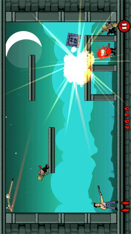Gleich zu Beginn des ersten Levels fällt dem Spieler eine gewisse Ähnlichkeit zum wahrscheinlich bekanntesten Smartphone-Spiel Angry Birds auf. Die Zombies stehen genau wie die Angry Birds-Schweine an verschiedenen Stellen. Das Alter-Ego des Spielers steht am linken Bildrand und hat eine Schusswaffe in der Hand.