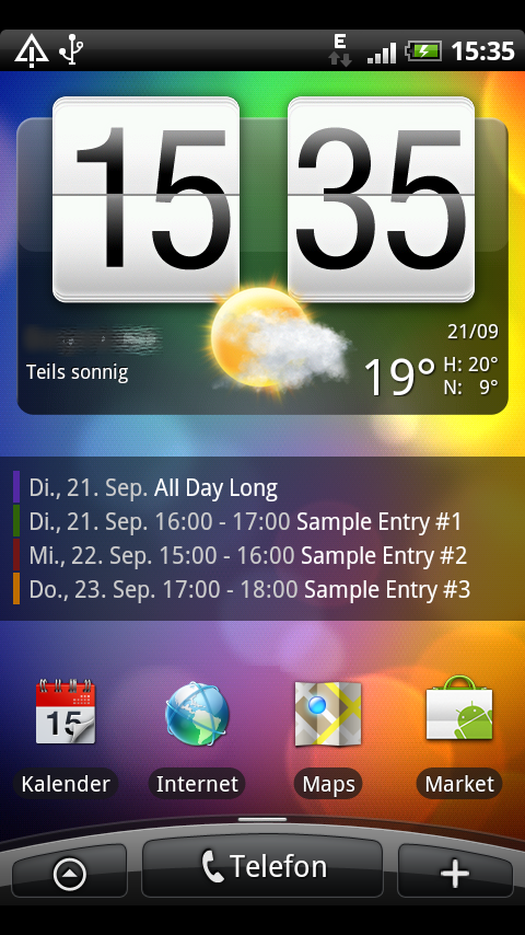 Mit einem Klick auf das Widget lässt sich der Kalender öffnen, wobei der Nutzer momentan die Wahl hat, ob sich der Standardkalender oder der im Android Market erhältliche, alternative Kalender Jorte öffnen soll. Egal, welche Kalender App man bevorzugt, vorgenommen wird die Wahl in den Einstellungen des Small Agenda Widgets.