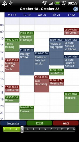 Die Start- und Endzeit eines Arbeitstages sind ebenso einstellbar, wie der Tag des Wochenbeginns (z. B. Sonntag oder Montag). Auf Wunsch können die Tage des Wochenendes auch komplett ausgeblendet werden. Die farbliche Gestaltung kann der Nutzer ebenfalls selbst bestimmen (auch für einzelne Tage). Für sich wiederholende Termine stehen ebenfalls verschiedene Optionen zur Verfügung, mit der die Eingabe komfortabler von der Hand geht. Zusätzlich haben die Entwickler noch eine Suchfunktion und ein Kalender Widget in allen gängigen Größen integriert.