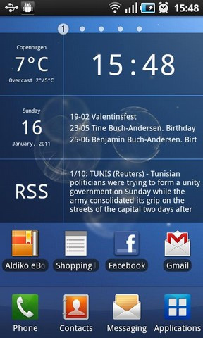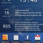 Neben Glass Calendar Widget und Glass Clock Widget bieten die Glass Widgets noch das Glass News Widget. Damit können die jeweils letzten drei Neuigkeiten eines RSS-Feeds angezeigt werden, den der Nutzer selbst auswählt. Wie beim Glass Calendar Widget kann er sowohl vorwärts, als auch rückwärts, durch die RSS-Neuigkeiten navigieren. Möchte der Nutzer mehr als einen RSS-Feed anzeigen, erreicht er dies durch die Platzierung eines zweiten Glass News Widgets, für das eine separate Feed-URL bestimmt werden kann.