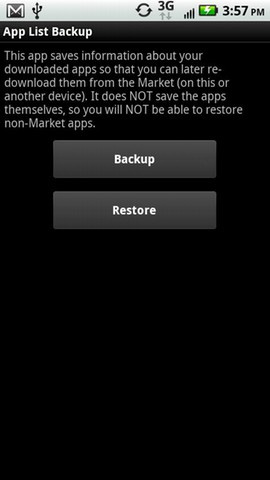 Beim Backup wird eine Liste der Apps in Textform auf der SD-Karte gespeichert. Diese Vorgehensweise hat den Vorteil, dass die Apps nach späterem Wiederherunterladen in der Download-Liste des Android Markets auftauchen. Somit werden sie für spätere Updates wieder erkannt, während es bei kompletten Backup-Programmen wie MyBackup zu Problemen kommt.