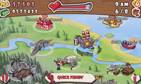4. Super Dynamite Fishing Dass die Fische nicht unbedingt mit der Angel erlegt werden müssen, beweist Super Dynamite Fishing auf explosive Weise. Es ist zwar unwahrscheinlich, dass die Überreste der Fische noch für das Abendessen reichen, wenn sie mit dem Dynamit in Berührung gekommen sind. Die Fischinnereien lassen sich hingegen noch gut verkaufen. Die Gewinne kann der Spieler anschließend in stärkere Waffen und luxuriösere Schiffe investieren. Das macht Sinn, denn bei Super Dynamite Fishing kann sogar die Traumfrau geangelt werden. Die Free-Version kommt mit Werbeeinblendungen, die durch den Erwerb der Vollversion entfernt werden können.