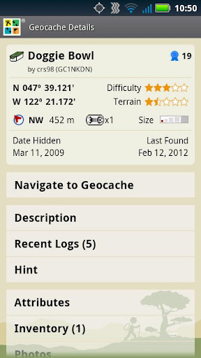 2. Geocaching Dies ist die offizielle App des Online-Portals Geocaching.com. Es stehen verschiedene Suchoptionen, Detailseiten der Geocaches inkl. Schwierigkeitsgrad, Foto-Galerien, Tipps und Terrainbewertung sowie eine Karten- oder Kompass-Ansicht zur Auswahl. Alle Informationen lassen sich für die Offline-Nutzung auch direkt auf dem Android Smartphone speichern.