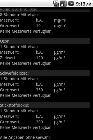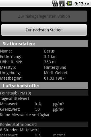 4. Luft- und Umweltdaten DE Mit der Luft- & Umweltdaten Deutschland App können Nutzer die Immissionsdaten in ihrer Umgebung immer im Blick behalten. Dazu gehören Daten zur Feinstaubbelastung, Kohlenstoffmonoxid-Gehalt, Ozonwert, Schwefeldioxid-Gehalt und Stickstoffdioxid-Gehalt. Die Messdaten werden vom Bundesumweltamt zur Verfügung gestellt. Die App kann kostenlos aus dem Android Market heruntergeladen werden.