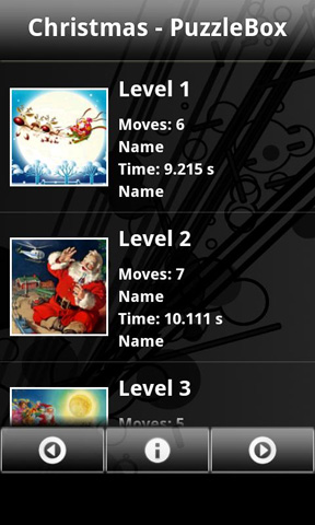 8. Christmas – PuzzleBox Das spaßige Puzzle-Spiel besteht aus mehreren Weihnachtsmotiven, die der Nutzer durch Schieben wieder zusammensetzen muss. Um Zeit zu sparen, können auch mehrere Puzzle-Teile gleichzeitig verschoben werden. Der Schwierigkeitsgrad steigt mit fortlaufender Spieldauer immer mehr an. Freigelegte Motive können auch als Wallpaper verwendet werden. Christmas PuzzleBox kann kostenlos aus dem Android Market heruntergeladen werden.