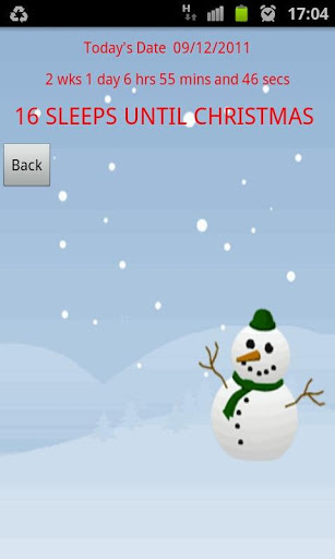 9. Countdown bis Weihnachten Wie lange ist es noch bis Heiligabend? Stellte man sich als Kind noch die alles entscheidende Frage, gibt es heutzutage die passende App dafür. Der Countdown bis Weihnachten zeigt die verbleibende Zeit bis Weihnachten in Tagen, Stunden, Minuten und Sekunden vor einem Bild mit fallenden Scheeflocken da.