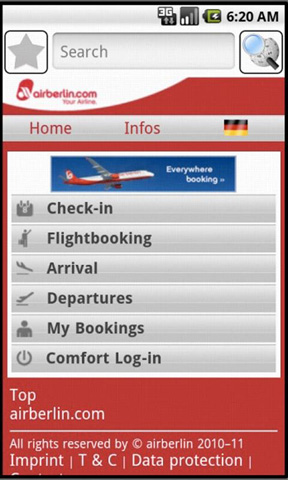 2. Air Berlin Die zweitgrößte deutsche Fluggesellschaft Air Berlin bietet die Möglichkeit, direkt über die Air Berlin App Flüge zu buchen, den Status bereits gebuchter Flüge zu prüfen, einen mobilen Check-In vorzunehmen und den Air Berlin Flugplan zu studieren. Außerdem bietet die App direkten Zugriff auf das Online-Lexikon Wikipedia, damit Nutzer jederzeit Informationen über das Reiseziel einholen können. Die Air Berlin App ist kostenlos.