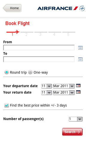 3. Air France Über die kostenlose App von Air France lassen sich Flüge buchen, Online-Check-Ins vornehmen und jederzeit die aktuellen Reisedaten abrufen. Für Flüge in bestimmte Regionen kann sich der Nutzer seine Bordkarte direkt auf sein Android Smartphone senden lassen. Auch Umbuchungen können direkt aus der App heraus vorgenommen werden. Neben Air France-Flügen erhalten Nutzer alle Informationen zu Flügen mit KLM. Dazu können die gesammelten Flying Blue Meilen verwaltet werden.