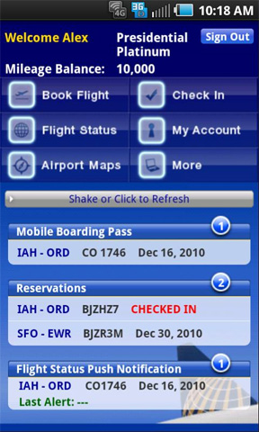 10. Continental Airlines Auch die App von Continental Airlines lässt keine Wünsche offen: Online Check-In, Flugbuchung, Fluginformationen und die Speicherung elektronischer Bordkarten können mit der Continental App vorgenommen werden. Die Fluginformationen lassen sich auch als Push-Dienst aktivieren und kommen so bei sich ändernden Flugzeiten als direkte Benachrichtigung zum Nutzer. Abgerundet wird das Angebot der kostenlosen App durch Karten vieler Flughäfen.