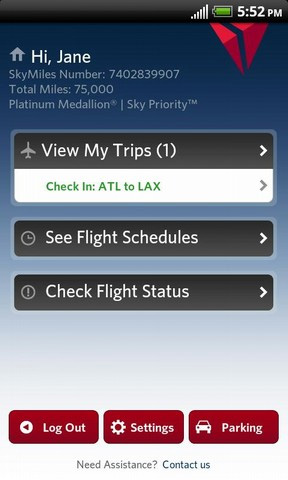 9. Delta Die im US-amerikanischen Atlanta beheimatete Delta Airlines ist eine der größten Fluggesellschaften der Welt und bietet auch eine Android App mit umfangreichen Möglichkeiten an. Dazu gehören neben dem Check-In für gebuchte Flüge auch der Download elektronischer Bordkarten, die Überprüfung des Flugplans sowie des eigenen SkyMiles-Kontos. Auch Flughafen- und Wetterinformationen können mit der Delta App abgerufen werden. Dazu ist es möglich, den Standort des geparkten Autos zu speichern, damit es später schnell wiedergefunden wird. Auch Delta stellt seine App kostenlos zur Verfügung.