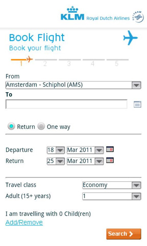8. KLM Auch die niederländische Fluggesellschaft KLM ist mit einer eigenen App in Android Market vertreten. Damit haben Nutzer ihre kompletten Reisedaten jederzeit dabei. Außerdem können sie Flüge buchen, Check-Ins vornehmen, gebuchte Flüge verwalten und ihr Flying Blue Meilen-Konto überwachen. Der Download der KLM App ist kostenlos.
