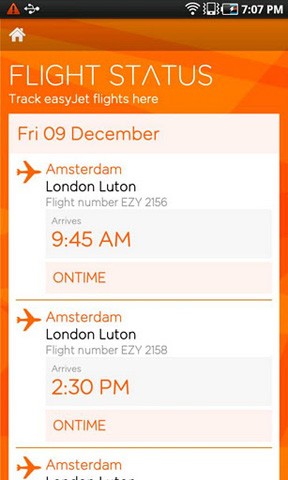 5. easyJet Mit der easyJet App können Kunden Flüge bei der Airline buchen und diese anschließend über ein kostenloses easyJet-Konto verwalten (Umbuchungen etc.). Auch Flugoptionen wie zusätzliche Gepäckstücke oder Speedy-Boarding können hinzugefügt werden. Außerdem informiert die App über Verspätungen, Flugausfälle und ähnliches. Die easyJet App steht kostenlos zum Download im Android Market bereit.