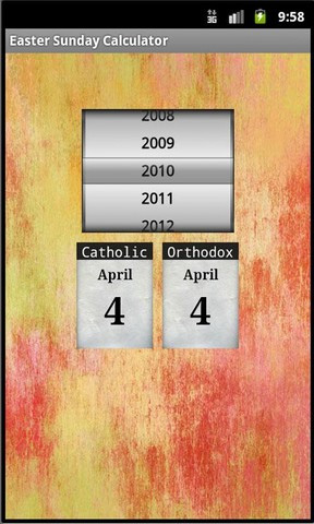 10. Easter Sunday Calculator Mit dieser praktischen und kostenlosen App last sich das Datum eines jeden Ostersonntags abrufen. Dabei ist es egal, ob man einen Ostersonntag der Vergangenheit oder Zukunft sucht. Einfach das gewünschte Jahr einstellen und schön zeigt Easter Sunday Calculator das korrekte Datum an. Durch Schütteln des Smartphones können die aktuellen Einstellungen jederzeit zurückgesetzt werden.