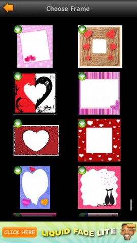 6. Love Frames Mit der App Love Frames lassen sich Fotos mit verschiedenen Bilderrahmen versehen, die sich dem Thema Liebe widmen. Einfach das Foto öffnen, den passenden Rahmen aussuchen, abspeichern und direkt aus der Love Frames App heraus per SMS oder Email versenden oder auf Facebook veröffentlichen.