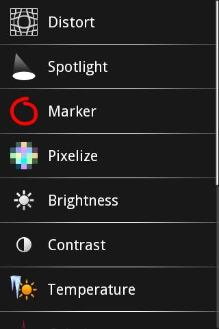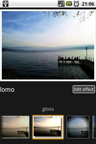 8. Photo Effects Photo Effects ist von den gleichen Entwicklern, die auch das App-Verzeichnis Appbrain betreiben. Mehr als 40, zum Teil künstlerische, Fotoeffekte sind in der App Photo Effects enthalten. Mit der Vorschaufunktion können Effekte leicht ausprobiert werden. Die Ergebnisse des Ausprobierens lassen sich anschließend mit Freunden über Facebook oder Twitter teilen.