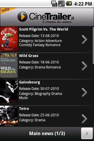2. CineTrailer Jederzeit die Trailer der demnächst im Kino erscheinenden und aktuell laufenden Kinofilme lassen sich – eine Online-Verbindung vorausgesetzt – mit der kostenlosen App CineTrailer ansehen. Und nicht nur das: Auch für die Neuveröffentlichungen auf DVD stehen die passenden Trailer bereit. Darüber hinaus kann sich der Nutzer über das Datum des Kinostarts informieren und sich eine kurze Inhaltsangabe des Films durchlesen.