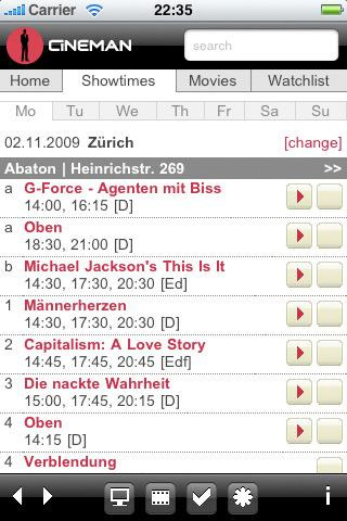 6. Cineman Die ebenfalls kostenlose App Cineman ist ein Kino- und Film-Guide in einem. So lässt sich das komplette Kinoprogramm für Deutschland, Österreich und die Schweiz abrufen. Für die vorgestellten Filme stehen praktischerweise auch gleich die passenden Kino-Trailer zum Ansehen parat. Dazu kommen Kino- und Film-News, Informationen zu Filmfestivals und außerdem eine Programmübersicht des TV-Programms für den Fall, dass der Kinoabend Zuhause stattfinden soll.