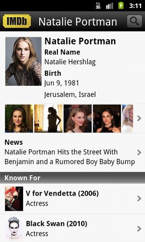 8. IMDb Filme & TV Die umfangreichste Filmdatenbank IMDb im Internet ist auch mit einer eigenen App im Ancdroid Market vertreten, von wo aus interessierte Nutzer sie kostenlos herunterladen können. Mit IMDb Filme & TV bestehen u. a. Zugriff auf die Film-Trailer, Fotogalerien, Schauspieler und Inhaltsangaben fast aller aktuellen und zurückliegenden Filme. Film-Charts und US-Kinovorstellungen runden das Angebot der kostenlosen IMDb Filme & TV App ab.