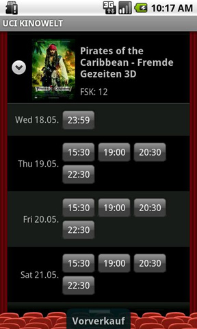 1. KINO.de Die App des KINO.de Online-Portals aus dem Verlagshaus Gruner+Jahr bietet alles, was Filmenthusiasten sich wünschen können: das aktuelle Kinoprogramm, die Neuerscheinungen der Woche, Kino-Charts, Filminformationen inklusive Kritiken und Video-Trailern, eine Kinosuche und vieles mehr. Die App kann ab Android 3.0 (Honeycomb) verwendet werden und bietet eine optimierte Tablet-Darstellung. KINO.de steht kostenlos zum Download im Android Market bereit.