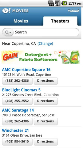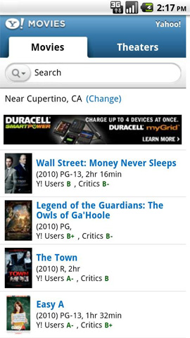 13. Yahoo! Movies Die App mit dem Kinoangebot des Online-Portals Yahoo! findet alle Kinos in der näheren Umgebung und liefert gleich die passende Anfahrtsbeschreibung und das aktuelle Kinoprogramm mit. Um den passenden Film zu finden, werden Film-Trailer angeboten. Außerdem können Nutzer der App in den Rezensionen von Filmkritikern und Kinogängern stöbern. Für immer mehr Kinos lassen sich auch direkt Eintrittskarten bestellen. Yahoo! Movies kann kostenlos heruntergeladen werden.