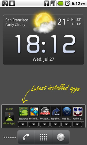6. Last used Launcher Anders als SmartWidget zeigt Last used Launcher nicht die am häufigsten genutzten Apps an. Stattdessen werden die fünf zuletzt geöffneten Apps dargestellt. Per Fingertipp können sie erneut geöffnet werden. Die Widget-Größe beträgt 4×1. Last used Launcher kann kostenlos aus dem Android Market heruntergeladen werden.